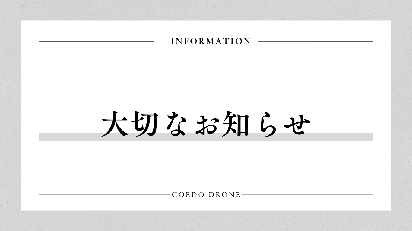 平素より COEDO DRONE をご愛顧いただき、誠にありがとうございます。